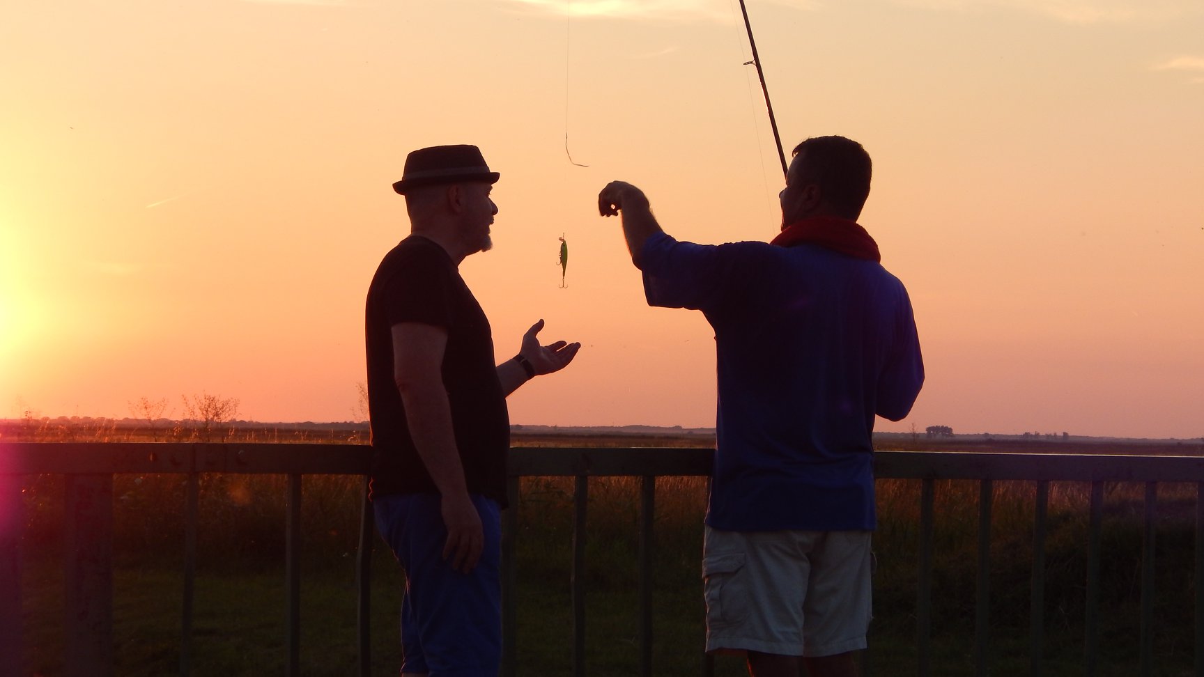 Nagy megkönnyebbülés volt, mikor elértük a horgász helyet. Kipakoltunk, nekiálltam pecázni, beszélgettünk és pár sör is lecsusszant közben, földes úton úgysincs rendőr címszóval. Nem mintha bárhol is problémát okozott volna ez. Barátom lelkesen mosolyogva mondja:
