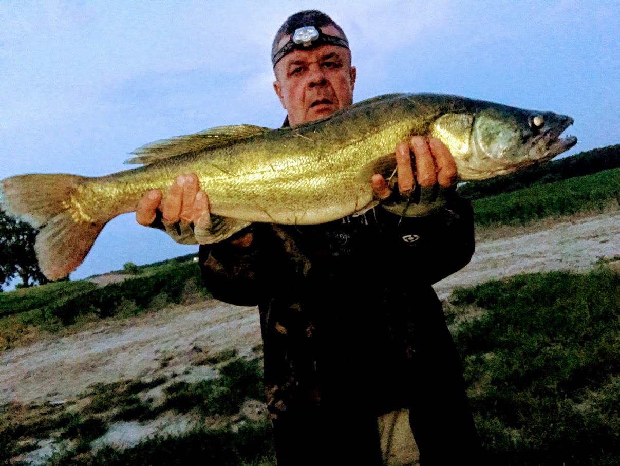 Hál isten itt sé volt sénki. Rövid gatyám, és dorkóm tocsogott, kissé fáztam, a halban sé nagyon bíztam, de mikor második dobásra volt egy olyan odakoppintásom, hogy a zöld hernyó eltűnt a horogról. Lázba jöttem. Gyors felraktam az egyik süllő gyilok wobblerem, ami az elmúlt, és az idei évben legtöbbször bizonyított. Dobálgatok, pár elakadás után, az egyik akadó lassan elindult a víz alatt. Azt hittem harcsa. Néhány perc múlva ott kavargott előttem eddigi pályafutásom legszebb süllője. Mikor megláttam, hogy a horog épphogy tart a szája szélében, olyan ideges lettem, hogy a merítésnél ki is löktem a szájából a műcsalit. Ha elmegy tutti sírok, vagy megkeresem a lúgkövet a padláson. A fáradt süllő horog nélkül ott feküdt a víz szélén. A gyors merítésnél sikerült félbetörnöm a szákot, de a hal kint volt már. Bénáskodtam az időzített szelfikkel, de minden jó, ha a vége jó!