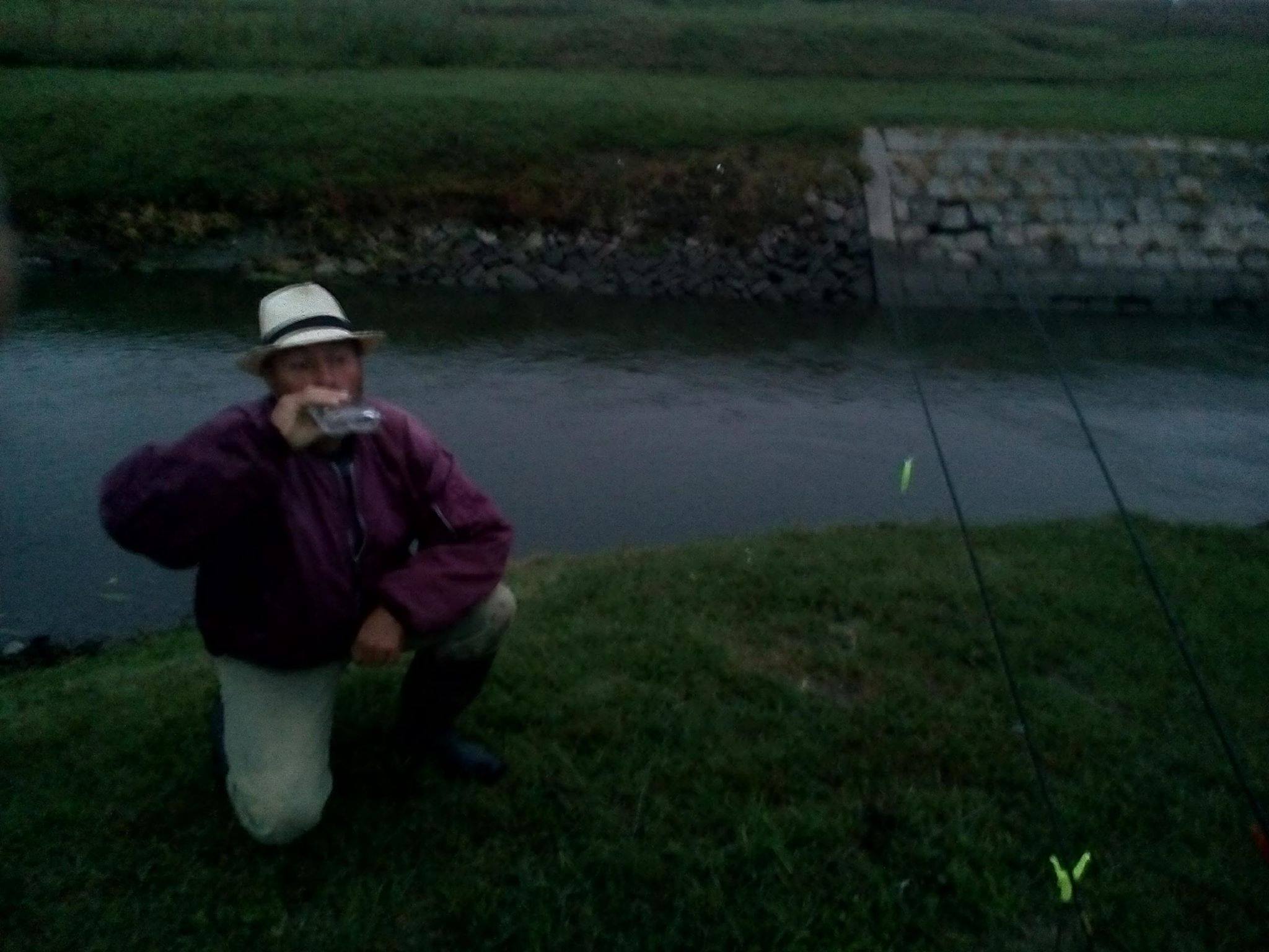 Egy süllő még oldalba kapta a wobblerem, láttam is a halat, a meglepetés erejétől a csúszós parton hatalmas hátast dobtam, és ahogy keltem fel még egyet sikerült, úgy, hogy a vízbe is becsúsztam. Nem voltam ideges, de hátra szóltam Lalinak, hogy ha röhög nem kap több páleszt. Mondta: